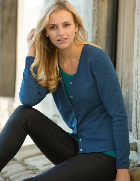 Cardigan / Vest van zijde en Merino wol van Engel Natur. 30% zijde, 70% Bio Merino wol, fijnrib. Geproduceerd in Duitsland, GOTS gecertificeerd.