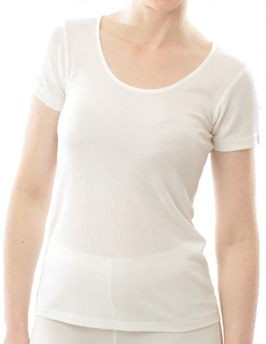 Zijden dames rib t-shirt met rondhals van Alkena. 100% bio zijde, rib jersey. GOTS gecertificeerd.